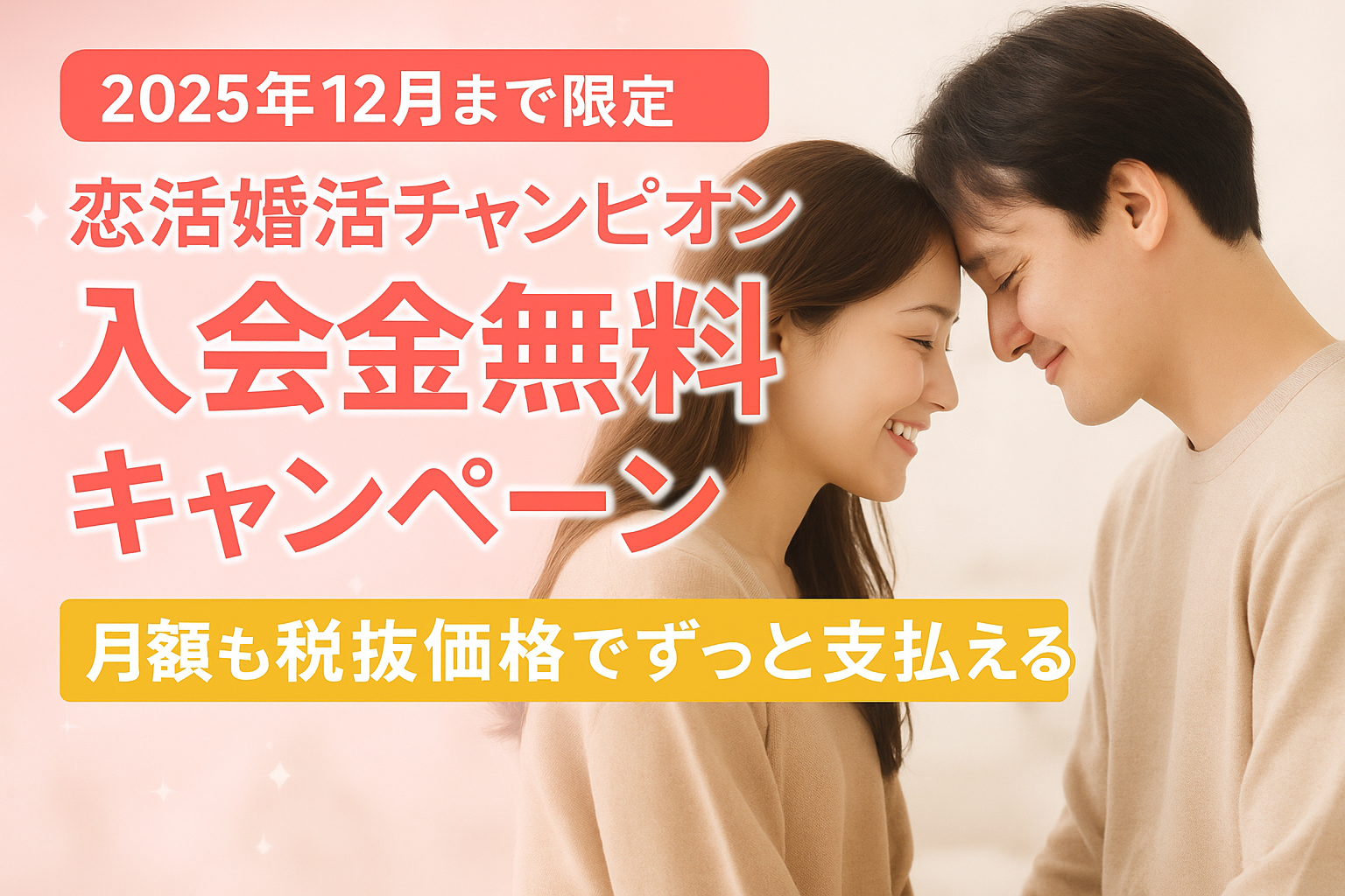 飯能市発の地域密着型マッチングサービス「恋活婚活チャンピオン」では、2025年12月末までにご入会いただいた方を対象に、**入会金がなんと無料!**になるお得なキャンペーンを実施中です。